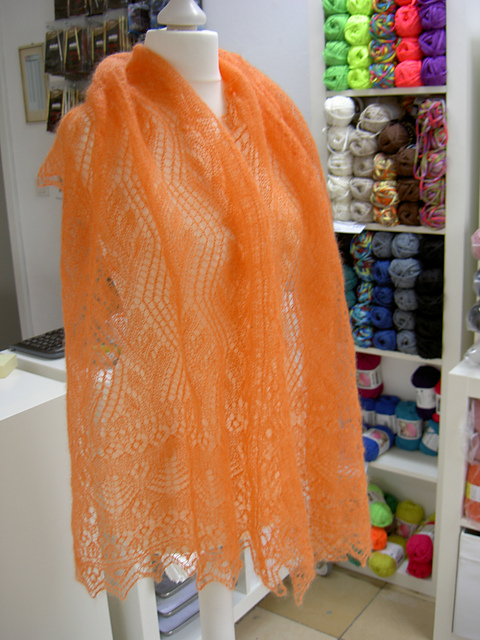 Klassische Shetland Lace Muster in Verbindung mit einer auffälligen Farbe und hochwertigem Kidmohair machen diesen Schal zu einem Lieblingsstück.